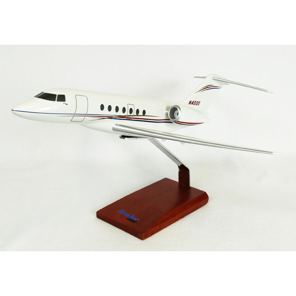 The Hawker 4000 super mid-size business jet, developed by Raytheon Aircraft Company, is the largest in the Hawker family. Originally known as Hawker Horizon prior to November 2005, it features an all-composite fuselage and swept aluminum wing design. It made its first flight on August 11, 2001, and official debut in November 2005 when a development aircraft was displayed at the National Business Aviation Association convention. The 4000 can seat eight to twelve passengers. The eight-seat cabin holds four pairs of club chairs with writing tables. The aircrafts carbon composite construction gives it more interior space than many jets in its class. This composite construction also makes the aircraft much lighter than a standard aluminum structure, allowing a maximum range of 3,445 nautical miles and a service ceiling of 45,000 feet. The aircrafts avionics system provides full authority automatic throttle, moving map displays and vertical navigation. The cabin air conditioning and pressurization system is digitally controlled, which can significantly improve passenger comfort when gas becomes trapped in the gastrointestinal tract, middle ear and paranasal sinuses. The US Federal Aviation Administration granted the Hawker 4000 type certification in December 2004. Shortly after, the first aircraft was delivered to Jack DeBoer, a businessman from Kansas. Final type certification was given on November 21, 2006 and production deliveries are scheduled to begin in September 2007. As of March 2007, a total of more than 130 aircraft have been ordered. Customers include the Jordan Grand Prix Racing Team, Flight Options LLC and NetJets. NetJets placed a contract for 50 aircraft in December 2005, the largest single commercial order in the history of Raytheon Aircraft. Deliveries will begin by the end of 2007 through 2013. In May 2007, NetJets Europe ordered 32 aircraft which are slated for delivery between 2008 and 2016. |