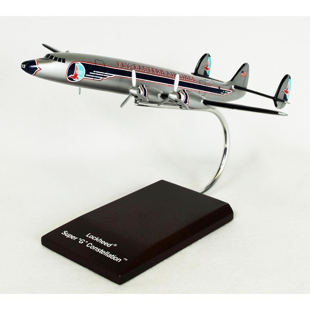 The L-1049 Super Constellation was introduced in 1951. The fuselage was extended by 18 ft 4.75 in and its passenger capacity increased from 69 up to 92 passengers. Its maiden flight was on July 14, 1951. It has an auxiliary wing-tip fuel tanks. The L-1049 Super Constellation could fly nonstop between New York and Los Angeles. When the L-1049G was introduced, the range was increased by 700 miles. The L-1049G featured 100 design improvements over the L-1049E model to make it better. Trans World Airlines named it the Super G and it received a total order of 102. The L-1049G has a crew of 5 with a typical seating capacity of 62-95 passengers. It has a maximum speed of 380 mph and a range of 5,400 mi. Currently, an existing L-1049G (Super G) Constellation built originally for cargo carier Slick Airways was restored by the ""Save-a-Connie"" organization (now the Airline History Museum) in 1986. It was repainted in the 1950s livery of TWA, resembling ""Star of America"" Constellation. The aircraft appeared at New Yorks John F. Kennedy International Airport at the original TWA terminal designed by Eero Saarinen, commemorating the 60th anniversary of the airline. |