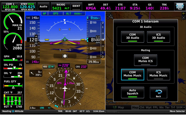 The G3X is a large glass flight display system designed for installation in experimental amateur-built and light sport aircraft (LSA). The non-certified G3X Touch system offers pilots easy-to-read, easy-to-use, high-resolution 10.6-inch flight displays with split-screen functionality and a host of advanced interface options – all at a great price. Large Touch Display On the exterior, G3X Touch offers a sleek and clean appearance with a large 10.6-inch display. Since G3X Touch is scalable and easily configurable, pilots can choose to install up to three G3X Touch displays in their panel. Incorporating the latest in infrared touchscreen technology, the display offers a resilient, high-resolution, sunlight readable screen that demonstrates Garmin’s industry-leading experience in integrated flight decks. The touchscreen provides a simple user-interface that is easy to learn and offers efficient access to information. The bezel contains four dedicated buttons and two rotary knobs, which provide increased efficiency in performing common in-flight functions like direct-to navigation, setting altitude, changing heading or radio tuning. Enhanced Functionality and Situational Awareness The G3X Touch display provides pilots with an intuitive split-screen mode with the option to view PFD, MFD, and engine information on a single display. Synthetic vision (SVX™) is a standard feature on G3X Touch, which provides a rich, three-dimensional depiction of terrain, obstacles, water features, the runway environment, and more. G3X Touch conveniently displays VFR Sectionals and IFR Enroute Charts, which provide pertinent information in-flight while on an IFR or VFR flight plan. A version of G3X Touch also includes SiriusXM Aviation Weather and Radio capability, which allows pilots to receive NEXRAD, METARs, TAFs, TFRs, winds aloft, and more. SiriusXM Satellite Radio is also accessible via G3X Touch; both weather and audio capabilities require purchase of a subscription from SiriusXM Satellite Radio Inc. The new GDL 39R (remotely mounted ADS-B receiver) is also compatible with G3X Touch and offers pilots an excellent solution to display ADS-B traffic and subscription-free weather. Seamless Integration and Familiar Interface G3X Touch interfaces with Garmin’s industry-leading experimental autopilot, which gives pilots autopilot control through the touchscreen interface, while still supporting the optional, stand-alone GMC 305 autopilot control panel. G3X Touch gives pilots access to all autopilot modes from the touchscreen display, including indicated airspeed hold, yaw damper, flight director, and level modes. Touchscreen control functionality for the remote-mounted GTX 23 ES transponder is provided on the display, as well. Team X has incorporated a user-interface that is similar to other Garmin touchscreen aviation products, so pilots can easily find pertinent in-flight information quickly. New Comm Radio and AOA Indicator Support Tucked away behind G3X Touch, pilots can choose to integrate the new GTR 20 remote transceiver for added functionality. The GTR 20 offers pilots an ideal solution for a clear, powerful communication radio and intercom, which is controlled from the G3X Touch display. The 10-watt radio provides advanced features such as 3D audio, stereo intercom, stereo music input, alert inputs, and standby frequency monitoring. Even more, frequency identification is available on the G3X Touch display so identifiers such as “KOSH ATIS” are displayed as the pilot tunes the frequency. For pilots who have incorporated the GTR 200 panel mount comm radio into their panel, full touchscreen control is also available through G3X Touch. The combination of the remote comm transceiver and transponder provide pilots the option to fly VFR with everything they need controlled from the display of G3X Touch, saving space and offering an immaculate panel. Additionally, the new G3X Touch can display angle of attack (AOA) information when installed with the GSU 25 ADAHRS and GAP 26 probe. The new optional GI 260 angle of attack indicator provides pilots with a visualized indication of AOA using a combination of colors and chevrons and may be mounted on the glare shield in the primary field of view. The AOA system offers progressive audible and visual alerts as the aircraft nears the critical angle of attack. In conjunction with G3X Touch, the GI 260 is designed to give pilots a quick, at-a-glance understanding of AOA during critical phases of flight and offers audible alerts during high-workload situations. |