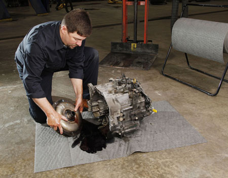 | Genuine PIGŪ Mat is the better way to soak up drips, spills and splatters, and spend more time repairing vehicles. Easier to use than floor sweep, so it reduces cleanup time. And with no damaging dust and grit to track around, the shop stays cleaner! |