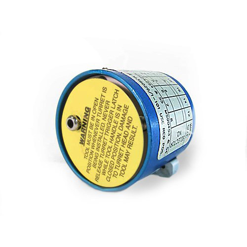| 615709, mil spec M22520/1-02, is a turret head used with the 615708, mil spec M22520/1-01, crimp tool frame on size 20-12 pin and socket contacts installed in MIL-C-5015, MIL-C-26482, MIL-C-26500, and MIL-C-83723 circular connectors. |