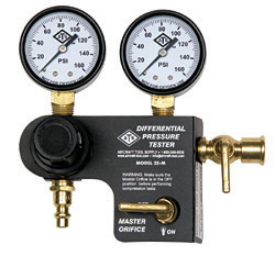 | This  Differential Cylinder Pressure Tester combines the features of the   popular 2E tester and a Master Orifice into one tool. Now you can conveniently check the calibration of your pressure tester before each use (in accordance with Teledyne Continental Service Bulletin M85-15) without disconnecting the tester. Comes with complete instructions. Includes hose and spark plug adapter. Note: For use with engines of 5" Bore Diameter or smaller per AC43.13 REV 1B. |