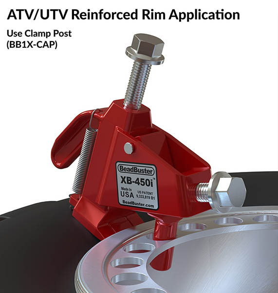 ATV/UTV REINFORCED RIMS: The accessory Clamp Post (BB1X-CAP) is required for use with ATV/UTV Reinforced Rims that have a reinforcing ring (aka “rock ring”), such as Kawasaki KFX OEM wheels, and certain aftermarket Baja racing wheels. Reinforced Rims look similar to Bead Locks, but should not be confused.