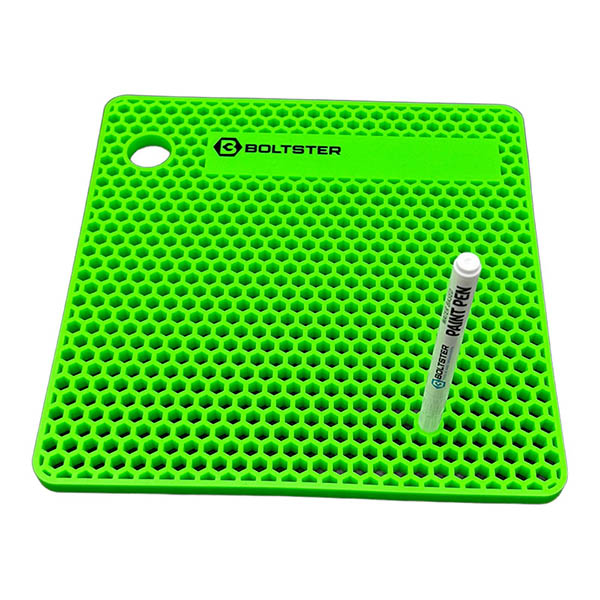 This white paint pen was designed specifically for writing on silicone and plastic surfaces. Stays when you want it, wipes off when you don't! This is hands down the best solution for drawing parts diagrams on your Boltster products. For convenience and storage, the slim body actually fits within the organizing pattern as well.