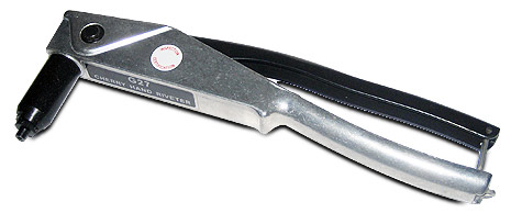 | The Cherry® G-27 Hand Riveter is designed specifically for the most efficient installation of 1/8" Cherry®MAX Rivets. The G-27 Riveter is intended for use where access or power limitation prevents the use of Cherry® pneumatic power tools. Overall length of the G-27 is 9-1/4", the net weight is just 13 ounces and the pulling head is an integral part of the tool. |