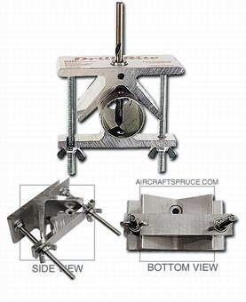 | Light and portable, this tool provides straight and true holes every time. Your electric hand drill will perform like a professional drill press. The easy, accurate way to drill any curved surface: Simply place the Drill Rite VGuide™ on any type of pipe or round stock, from 1/2" to 2 1/2" in diameter. Swing the gate closed and lock it down. Insert the proper drill bit in the guide bushing and drill a precisely accurate hole. Includes super hardened drill bushings for popular 3/16" and 1/4" holes for rivets and aircraft hardware. Precision made in the U.S.A. from high quality aircraft grade aluminum. |