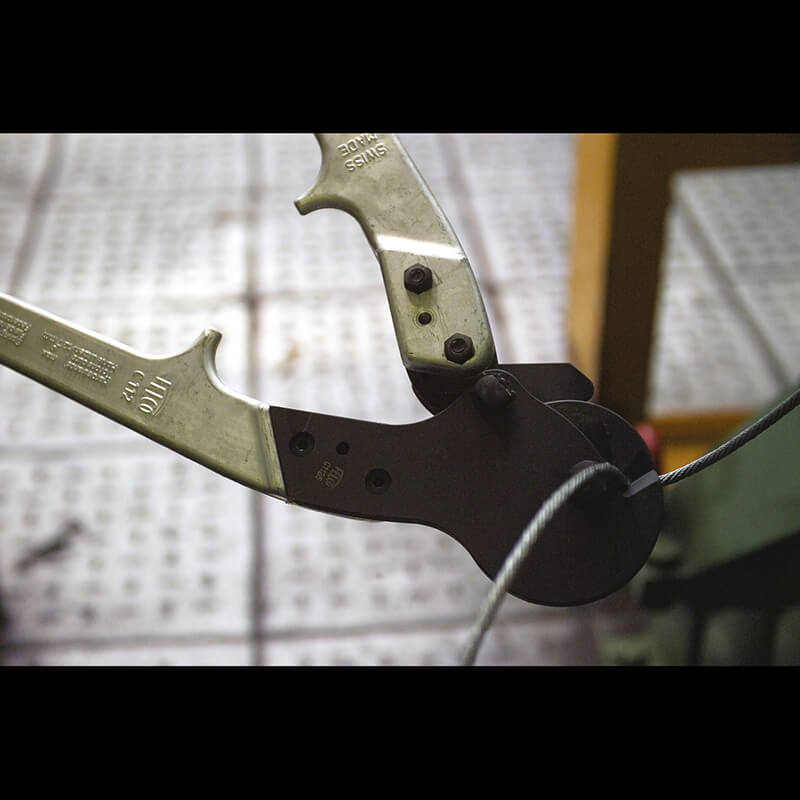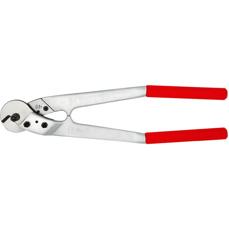 | Two-hand steel wire and cable cutter. Cutting capacity of 5/8" / 16mm. Reliable: unbreakable hardened handles made of forged aluminium with a lifetime guarantee / blades and fastenings in high-quality hardened steel / parts subject to wear and tear can be replaced Efficient: clean, precise cut without crushing the cable thanks to the triangular cutting system / easy and durable cutting adjustment Ergonomic: lightweight handles / helpful lever effect / comfortable plastic coating |