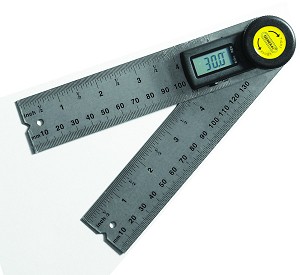| These new angle finders combine the ruggedness of analog rulers (standard and metric) together with the digital technology needed for complete accuracy when measuring inside, outside and reverse angles. Precise measurements prevent waste by facilitating exact miter cuts. One button activates the reverse angle function, a hold button digitally saves the measurement and the large ergonomic locking knob saves the angle manually. A big LCD readout makes measurements extremely easy to read while an innovative center check notch enables exact ruler placement marking. The Models 822 (Patent Pending) are ideal for framing, custom furniture-building, stair and patio construction, flooring, tiling basically all woodworking, carpentry and contractor needs in the shop or in the field. |