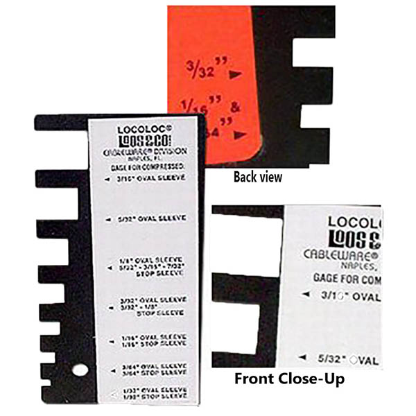 The Locoloc® sleeve gauges will measure all oval or stop sleeves used on 1/32″ up to and including 5/16″ diameter cable.