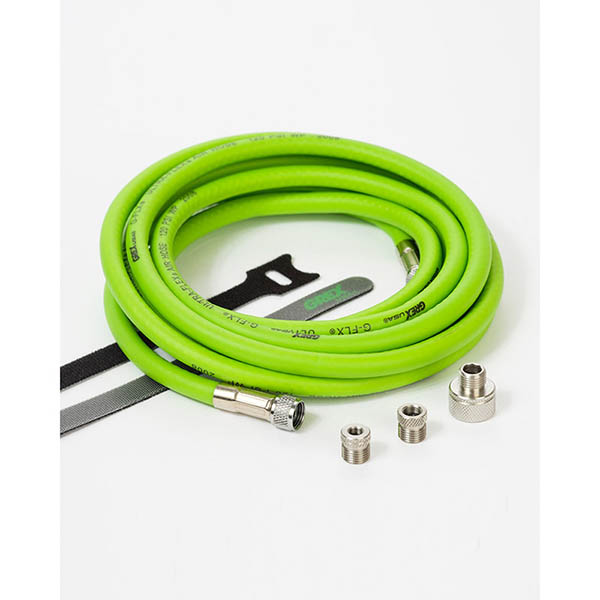 ULTRA-FLEX® is able to operate up to 120 psi air pressure with excellent resistance to abrasion, cracking, UV and chemicals. The smooth outer jacket makes this air hose easy to clean. Unlike other typical airbrush hoses, there's no exposed nylon fabric that easily absorbs paint and collects dirt. Made for indoor and outdoor use with extreme all weather flexibility. It's lightweight and stays supple even under pressure. Each air hose also comes with adapters that allow it to connect with the most common air compressor and airbrush fittings - making this the most universal airbrush hose set. ULTRA-FLEX® by GREX is truly the only airbrush hose that you'll ever want. |