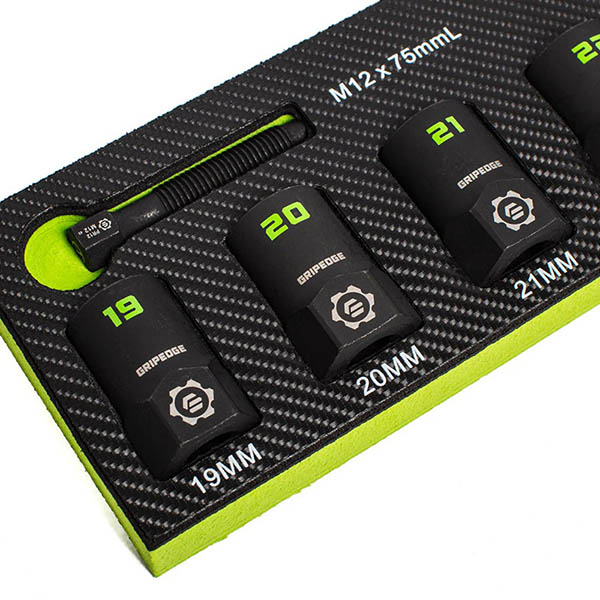 | Sizes included: 19-25mm. Unique Bi-directional design for left and right threaded bolts as well as the ability to work the stripped fastener back and forth to break it free. Non-tapered internal geometry provides grip from top to bottom. Patented G-FORS pusher rod provides quick and easy removal of extracted objects. Premium CR-MO steel construction for increased strength and durability. Laser marking for greater size visibility. Premium coating for increased corrosion resistance. |