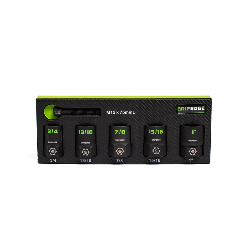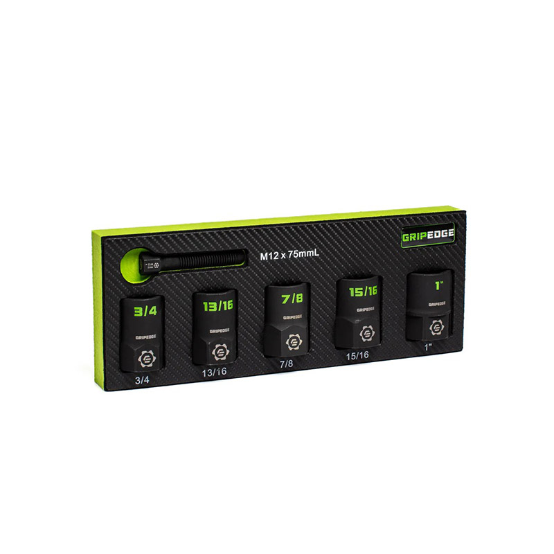 | Sizes included: 3/4", 13/16", 7/8", 15/16", 1". Unique Bi-directional design for left and right threaded bolts as well as the ability to work the stripped fastener back and forth to break it free. Non-tapered internal geometry provides grip from top to bottom. Patented G-FORS pusher rod provides quick and easy removal of extracted objects. Premium CR-MO steel construction for increased strength and durability. Laser marking for greater size visibility. Premium coating for increased corrosion resistance. |
