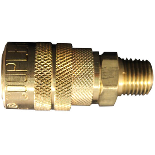 Milton Industries is proud to be the creator and leader of the pneumatic industry standard M-Style coupler. This 1/4" MNPT M style brass coupler has a 1/4" basic flow size, offering a maximum of 300 PSI. Comes with Buna-N seal and air flow of 40 SCFM. Both the body and sleeve are made of brass. You can also find this S-716 air coupler included in these Milton coupler/plug and accessory kits: #S-221, S-222, MK1669-1, 683-MCPK. Milton M-Style Kwik Change couplers are made of brass, while M-Style Kwik Change plugs are made of case-hardened steel and are plated to resist rust. This collection of couplers and plugs: