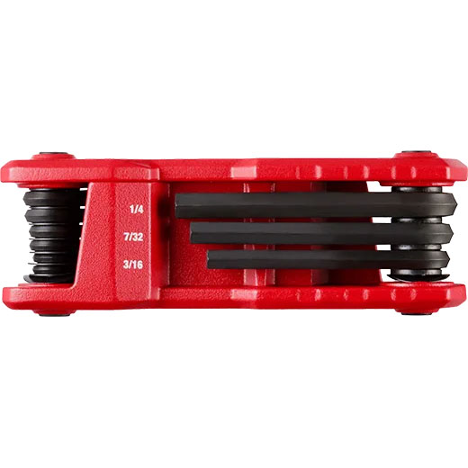 The full metal body construction withstands high torque and extends the life of the tool in the toughest jobsite conditions, while the shape of the handle is optimized for comfort. The keys rotate 270° for greater access and torque in tight spaces. The convenient folding Allen wrench set makes transportation and storage simple. The Milwaukee® 9-Key SAE Folding Hex Key Set is backed by our Limited Lifetime Warranty.  |