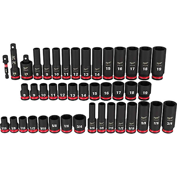 SHOCKWAVE Impact Duty™ 3/8" Drive 6 Point Socket Sets feature the boldest, longest-lasting markings and extreme impact durability in high torque applications. The stamped and ink-filled size marking enables you to select the right socket every time throughout the life of the socket. These sockets are engineered with high strength forged steel for optimized performance in heavy-duty applications. The non-slip hex geometry prevents fastener rounding, and a dual-hole design and ring groove allow for easy socket attachment and removal. The storage cases are impact resistant and nest together for easy stacking and storage. All MILWAUKEE® SHOCKWAVE Impact Duty™ Sockets backed by a Lifetime Guarantee and meet ASME industry standards. |