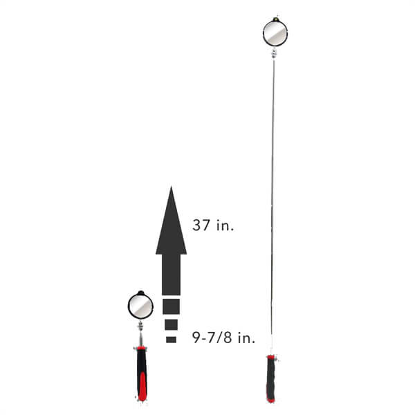 With a 2-3/8" diameter round mirror Ullman's HTC-2LT can be adjusted for optimal viewing and inspection. A built-in LED light helps illuminate dark areas. The HTC-2LT telescopes from 9-7/8" to 37" and a cushioned grip helps prevent slipping in wet or oily hands. Two CR2016 batteries are included. |