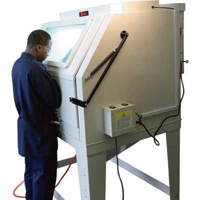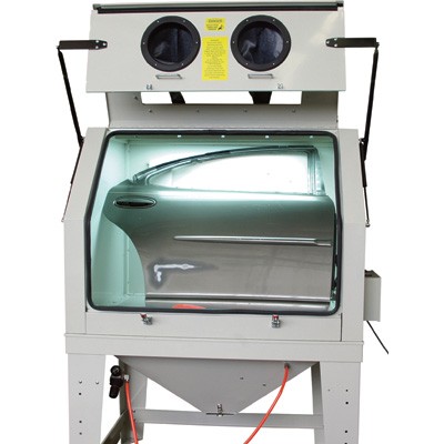 | The Monster Blast Cabinet is constructed of 14-gauge steel for strength and durability. It features a built-in dust collector and large work area to handle bigger pieces. Foot pedal control and side-mounted light switches for easy control.                                           What's included: