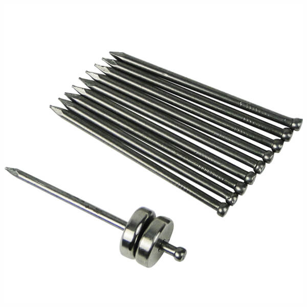 | For dimpling in hard to reach places.        Works with any hand pop rivet tool. Can        be used over & over. Works for both 100      & 120 pop rivets. Extra nails included        (Uses standard hardware store nails). 2      sizes available. Note: The pop rivet dimplers show above are made with 100° angles, same as regular dimple dies. They will work with either solid flush rivets (AN-426 – 100°) or with pull type rivets such as a AVEX rivets (120°), etc. The dimple formed with these pop rivet dies will not be as ‘sharp’ as dimples formed with regular dimple dies. This is because you get more pressure with a squeezer or a hammer than with a pop rivet puller; however, the dimples formed with pop rivet dimplers are adequate for occasional use in tight or hard-to-use places. |