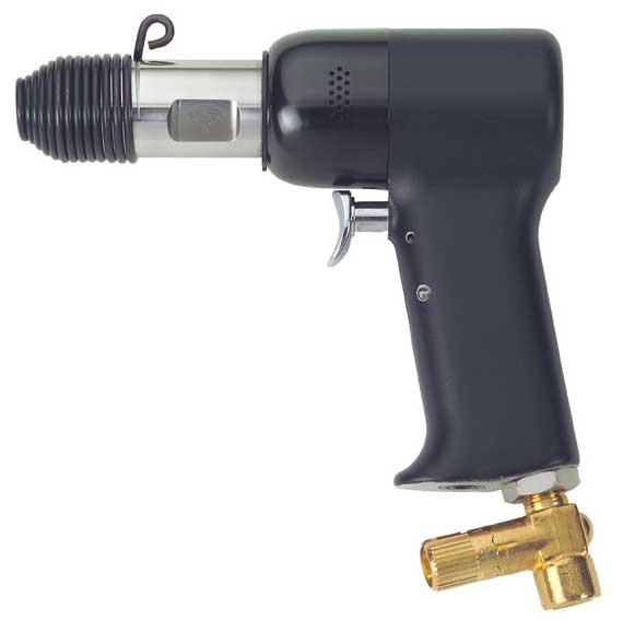 | This popular rivet gun set  is used in aircraft manufacturing plants worldwide. The "X" series rivet gun has an incomparable teasing triggers, allowing you to slowly begin riveting without damaging the skin. It has a lightweight aluminum handle with powder coat finish for comfort. Also features a hardened and precision ground steel piston, cylinder and spool valve for long life.  The brass regulator and air tool fitting are directly assembled to the rivet gun for your convenience. Includes: