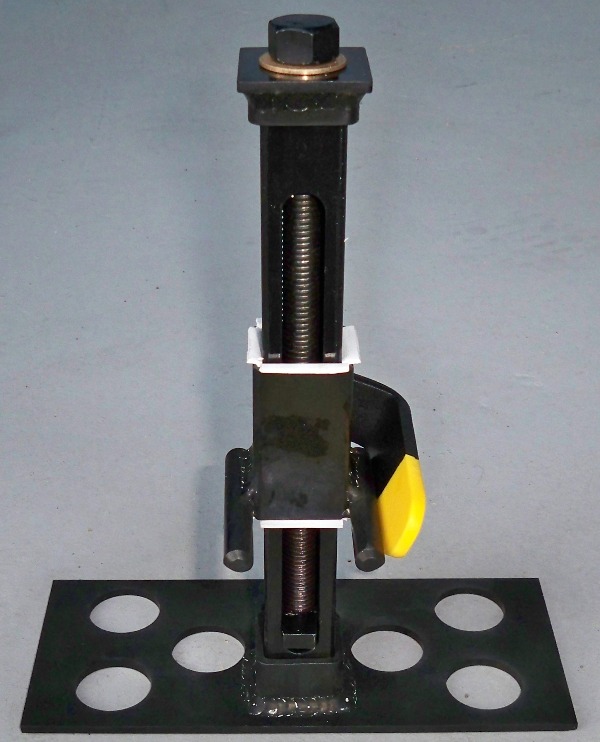 All steel construction, weighs less than 3 pounds. Jack mast easily removes from base plate for compact storage. Uses 3/4" wrench to operate (wrench not included). Tested to 1350 pounds. Has securing arm that positions between the gear leg & brake to stabilize the jack works on both left and right gear leg with a simple adjustment.