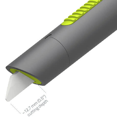 | The Slice auto-retractable pen cutter is a safer alternative to a traditional utility knife. Includes one replaceable Slice ceramic safety blade. Patented handle with rubberized slider button limits the amount of exposed ceramic-blade to further reduce injuries. Pen Cutter Automatically retracts back into housing for added safety when slider button is released. Patented high-tech double-sided Slice ceramic blade designed to reduce injuries by incorporating a safer rounded-tip. Sharpness level up to 10x longer than steel. Measures 135 mm L x 18 mm diameter (5.3 in L x 0.75 in diameter). |