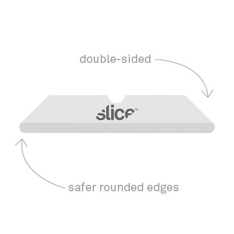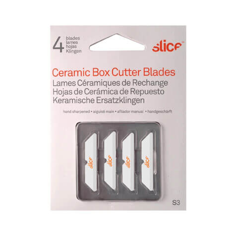 | Rounded-Tip Slice ceramic replacement blades (PACK OF 4), for use only with the Slice ceramic-blade cutters. Each pack contains four (4) double-sided, rounded-tip Slice ceramic blades. Each blade measures approximately 1-5/16" inches (34mm) in length. Also available in Pointed-Tip. For use exclusively with Slice cutting tools for 12-04574, 12-04575, 12-04576, 12-04577, 12-04578. |