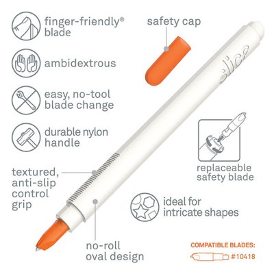 The SliceŽ Precision Cutter is the perfect tool for crafters who want to cut various materials without worrying about harming themselves or their project. |