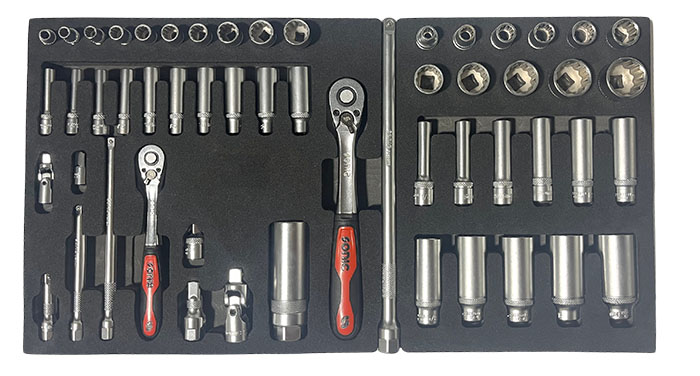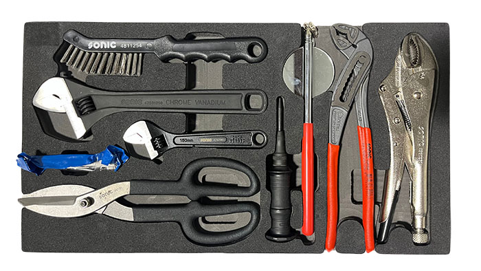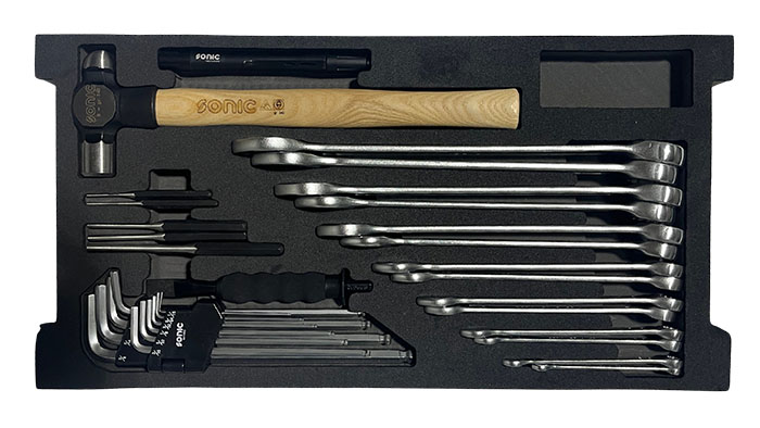 The Sonic Base Aviation Toolset is the perfect solution for the technician on the go. Paired with the mobile tool case, you have the ability to move your toolset around with ease. Included in this 145-piece toolset is trim-lobed Philips and slotted screwdrivers, an assortment of 1/4" and 1/2" 12PT SAE sockets, as well as the essential combination pliers, hammers, and hex keys. This set has everything you need to jump start your aviation career. This set comes standard with a serialized tool ID laser etched on each tool. The tool case features an injection molded body made in copolymer polypropylene, able to withstand sockets, rough usage, and harsh weather conditions. It features two side handles, an extractable trolley handle (990mm extended height), and four robust silent wheels. All drawers, while completely accessible when open, are provided with a self restrain stop to prevent the accidental falling out. A metal reinforced padlock hole grants the possibility to secure completely all compartments with one single lock and key (not included with set). |