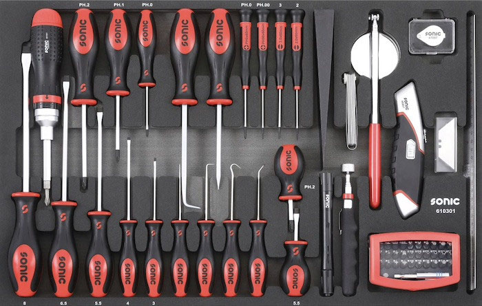 Sonic thought of the Aviation experts with this 263-piece tool set, hence many tools in this kit are an excellent fit for the trade. This toolset features all SAE sockets and wrenches. This toolset is available with or without a toolbox. Please select your option to the right. This set comes standard with a serialized tool ID laser etched on each tool. Our Aviation A&P Solutions are designed and manufactured by Sonic Tools to fill the missing piece for aviation technicians and students who are starting their journey as A&P technicians. We created comprehensive solutions with direction from aviation industry experts. Our solutions are perfect for anyone working on aircraft and are the perfect foundation for every rising and experienced A&P technician to perform efficiently. We created Basic, Intermediate, and Advanced aviation solutions that present you the suitable options, depending on the caliber of storage and tools desired. Nothing matches our level of aviation offerings that create organization, increase efficiency and adds value to your education. Everything included here is backed by Sonic's Hassle-Free Warranty! |
