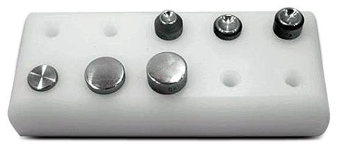 | Six piece set of the most commonly used squeezer sets shown above: 3/32" & 1/8" cup sets; 1/8” modified cup set; 1/8" & 1/4" flush sets; & 1/16” by 3/8” dia. flush set; plus #4510 organizer block. |