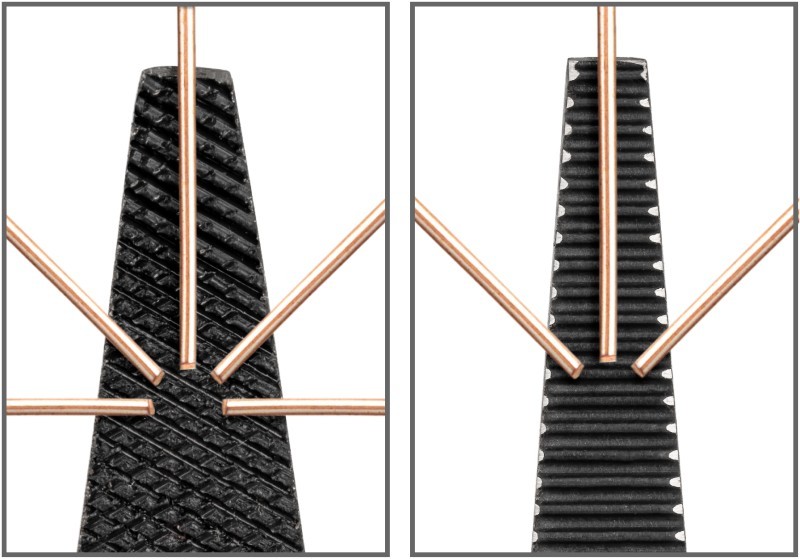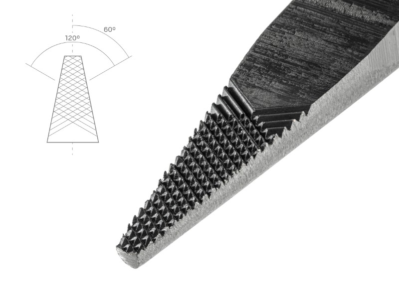 ![]() Generous Reach A smooth 70-degree bend works around obstructions. Originating from a point more than halfway down the jaw, the bent section is exceptionally long, offering a generous reach into tight, narrow spaces. ![]() Crosscut Teeth Oriented at 120 degrees to each other, the serrations are cut in two passes to form regularly-spaced, diamond-shaped teeth. ![]() Grip in All Directions Unlike straight serrations where the grip strength varies relative to tooth direction, a crosscut pattern grips evenly in any direction. ![]() Range of Tooth Types Smaller pliers with fine teeth are best for smaller precision applications and result in less marring of the work piece. Larger pliers with more aggressive teeth provide a stronger grip on less delicate parts. ![]() Lean and Practical Grips Single-layer vinyl grips offer a bit of comfortable cushion and provide a smooth, yet nonslip surface. They're slim, not thick and bulky, so they stay out of the way when space is tight and are always easy to handle, even with gloves on. ![]() Non-absorbing and resistant to most common fuels, lubricants, and cleaners. Won't get soft or sticky over time. Easy to wipe clean. |