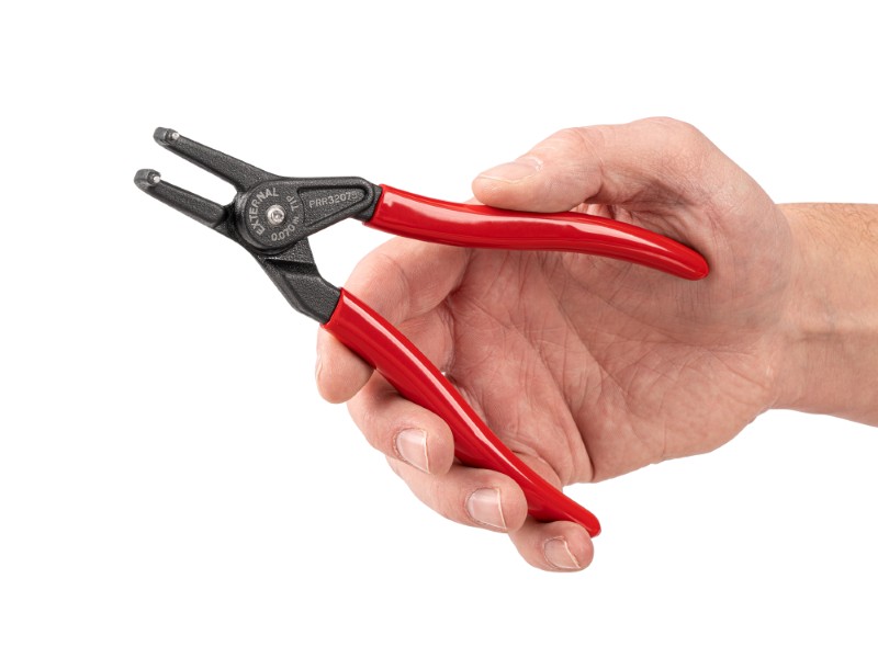 Forged Jaws and Refined Tips for Strength and Control Angled for Control The tips are angled to securely hold the ring with a downward pressure, preventing the ring from slipping off. ![]() Hardened for Strength The tips and jaws are made from two different materials, each optimized for its function. Hardened bearing steel is used for the tips to enhance shear strength. ![]() Crimped-In Cylindrical Tips The tips are smooth, straight, and free of burrs to create a consistent, controlled grip on the ring. A crimp at the end of each jaw permanently holds the tips in place. ![]() Uncompromised Design for a Single Purpose These pliers are built for a single, dedicated purpose. By keeping things simple and free of unnecessary features, they remain lean and optimized for the job. Just grab them and go—no adjustments, loose parts, or compromises. ![]() Secure Hold for Reduced Twisting The combination of the outward angled tips and the flat surface at the base of the tips creates a very secure hold on the ring which reduces twisting and the risk of slipping off. Long, Slim Jaws for More Access The long, slim jaws and compact joint allow you to reach deep into a cavity or bore. ![]() Spring-Loaded, Bolted Joint The two forged handles are permanently bolted together and spring-loaded. The spring is oiled and housed inside the joint, keeping it hidden and protected while providing smooth, quiet operation. Note: The joint is not adjustable or serviceable. ![]() Broad, Comfortable Handles The forged handles get wider in the center and are coated with vinyl grips to improve control and comfort. ![]() Clear Markings The tip size and function are clearly laser-marked on the pliers for quick reference. ![]() Parts and Materials A. Tips Made of E52100 bearing steel hardened to 47–53 HRC with nickel plating. B. Jaws Made of 1045 steel hardened to 37–43 HRC with black oxide finish and a light coating of rust inhibitor. C. Pivot Screw Made of 1015 steel with nickel plating. Non-removable. D. Handle Grips Made of single-layer vinyl. E. Internal Spring Made of 1065 spring steel. Oiled. ![]() |