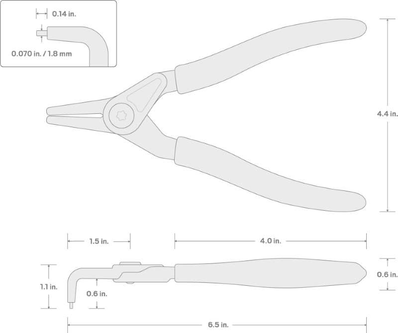 Tekton 7 Inch 90-Degree External Retaining Ring Pliers (0.070 in. Tips)