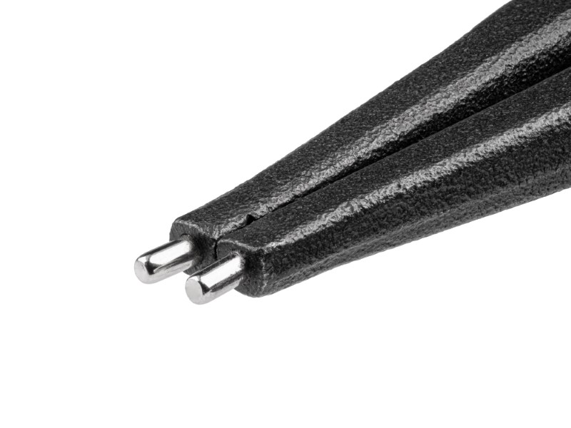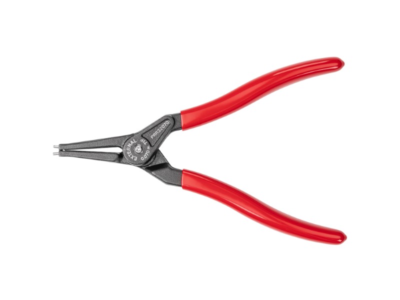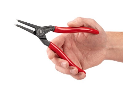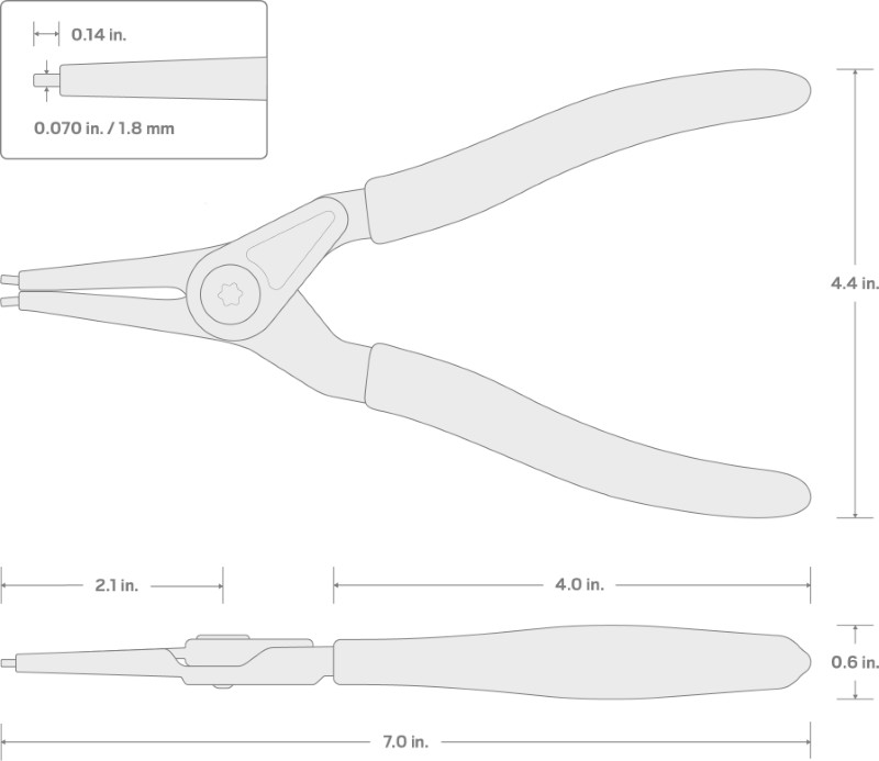 Forged Jaws and Refined Tips for Strength and Control Angled for Control The tips are angled to securely hold the ring with a downward pressure, preventing the ring from slipping off. ![]() Hardened for Strength The tips and jaws are made from two different materials, each optimized for its function. Hardened bearing steel is used for the tips to enhance shear strength. ![]() Crimped-In Cylindrical Tips The tips are smooth, straight, and free of burrs to create a consistent, controlled grip on the ring. A crimp at the end of each jaw permanently holds the tips in place. ![]() Uncompromised Design for a Single Purpose These pliers are built for a single, dedicated purpose. By keeping things simple and free of unnecessary features, they remain lean and optimized for the job. Just grab them and go—no adjustments, loose parts, or compromises. ![]() Secure Hold for Reduced Twisting The combination of the outward angled tips and the flat surface at the base of the tips creates a very secure hold on the ring which reduces twisting and the risk of slipping off. Long, Slim Jaws for More Access The long, slim jaws and compact joint allow you to reach deep into a cavity or tight against a shaft. ![]() Spring-Loaded, Bolted Joint The two forged handles are permanently bolted together and spring-loaded. The spring is oiled and housed inside the joint, keeping it hidden and protected while providing smooth, quiet operation. Note: The joint is not adjustable or serviceable. ![]() Broad, Comfortable Handles The forged handles get wider in the center and are coated with vinyl grips to improve control and comfort. ![]() Clear Markings The tip size and function are clearly laser-marked on the pliers for quick reference. ![]() Parts and Materials A. Tips Made of E52100 bearing steel hardened to 47–53 HRC with nickel plating. B. Jaws Made of 1045 steel hardened to 37–43 HRC with black oxide finish and a light coating of rust inhibitor. C. Pivot Screw Made of 1015 steel with nickel plating. Non-removable. D. Handle Grips Made of single-layer vinyl. E. Internal Spring Made of 1065 spring steel. Oiled. ![]() |