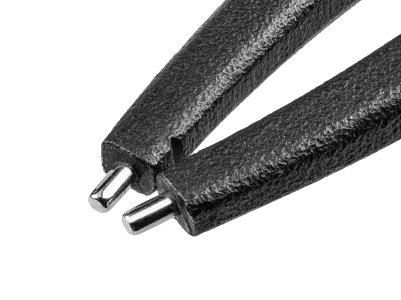 Forged Jaws and Refined Tips for Strength and Control Angled for Control The tips are angled to securely hold the ring with a downward pressure, preventing the ring from slipping off. ![]() Hardened for Strength The tips and jaws are made from two different materials, each optimized for its function. Hardened bearing steel is used for the tips to enhance shear strength. ![]() Crimped-In Cylindrical Tips The tips are smooth, straight, and free of burrs to create a consistent, controlled grip on the ring. A crimp at the end of each jaw permanently holds the tips in place. ![]() Uncompromised Design for a Single Purpose These pliers are built for a single, dedicated purpose. By keeping things simple and free of unnecessary features, they remain lean and optimized for the job. Just grab them and go—no adjustments, loose parts, or compromises. ![]() Long, Slim Jaws for More Access The long, slim jaws and compact joint allow you to reach deep into a cavity or bore. ![]() Spring-Loaded, Bolted Joint The two forged handles are permanently bolted together and spring-loaded. The spring is oiled and housed inside the joint, keeping it hidden and protected while providing smooth, quiet operation. Note: The joint is not adjustable or serviceable. ![]() Broad, Comfortable Handles The forged handles get wider in the center and are coated with vinyl grips to improve control and comfort. ![]() Clear Markings The tip size and function are clearly laser-marked on the pliers for quick reference. ![]() Parts and Materials A. Tips Made of E52100 bearing steel hardened to 47–53 HRC with nickel plating. B. Jaws Made of 1045 steel hardened to 37–43 HRC with black oxide finish and a light coating of rust inhibitor. C. Pivot Screw Made of 1015 steel with nickel plating. Non-removable. D. Handle Grips Made of single-layer vinyl. E. Internal Spring Made of 1065 spring steel. Oiled. ![]() |