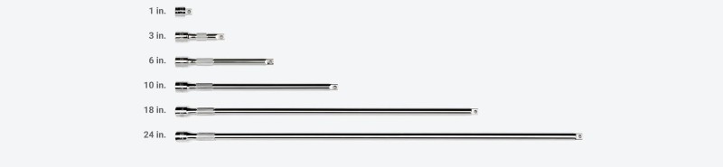 6 Extensions Attach an extension to your drive tool for reaching past obstructions or into tight, narrow spaces with your socket. ![]() Universal Joint Reach around obstructions and access fasteners at an angle. ![]() Adapter Adapt 3/8 inch drive tools to 1/2 inch drive sockets. ![]() Reducer Reduce 3/8 inch drive tools to 1/4 inch drive sockets. ![]() Hex Bit Holder Adapt 1/4 inch hex shank bits to 3/8 inch drive tools. ![]() Knurled Grip The knurled band offers a firm grip for turning fasteners and attaching or removing extensions from a drive tool. ![]() Secure Drive Tool Engagement Detent grooves and beveled edges provide a smooth and secure connection with the drive tool. ![]() |
