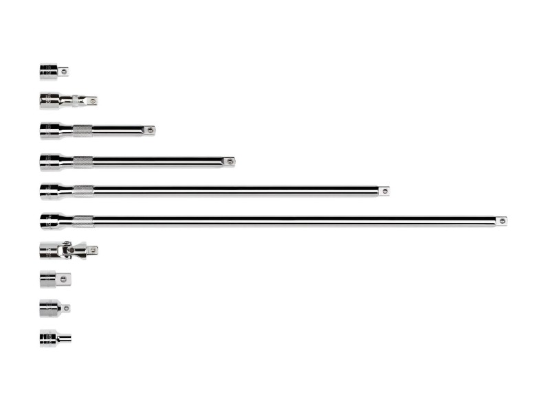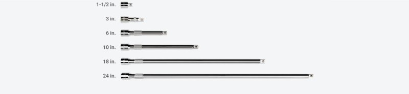 6 Extensions Attach an extension to your drive tool for reaching past obstructions or into tight, narrow spaces with your socket. ![]() Universal Joint Reach around obstructions and access fasteners at an angle. ![]() Adapter Adapt 1/2 inch drive tools to 3/4 inch drive sockets. ![]() Reducer Reduce 1/2 inch drive tools to 3/8 inch drive sockets. ![]() Hex Bit Holder Adapt 1/4 inch hex shank bits to 1/2 inch drive tools. ![]() Knurled Grip The knurled band offers a firm grip for turning fasteners and attaching or removing extensions from a drive tool. ![]() Secure Drive Tool Engagement Detent grooves and beveled edges provide a smooth and secure connection with the drive tool. ![]() |