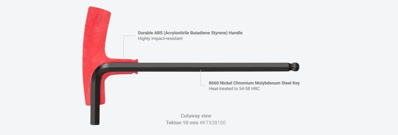 Designed for Torque and Speed ![]() Comfortable, Versatile Handle Design The handle's large, contoured shape is designed to fit your hand and make it comfortable to spin the tool and apply torque from various positions. ![]() Tight Fit with Fasteners We precisely manufacture our hex key geometry on the large end of the applicable range, resulting in less slop in fasteners. ![]() Two Measures of Tolerance Control We measure our hex key tolerances in two ways, from point-to-point and side-to-side, to ensure the highest standards of dimensional accuracy and consistency. 20º Ball Angle Increases Access Our keys implement a steep ball end angle that increases your ability to access fasteners while still maintaining sufficient strength. ![]() Refined Edges Tekton T-handle keys have slightly chamfered edges (except sizes that are too small to be chamfered: 2 mm and 5/64 in.) and a smooth top face to optimize engagement with fasteners. ![]() Materials and FinishesMolded Handle and Steel KeyOur T-handle keys are made the same way as our L-keys with the addition of a molded handle that makes applying torque easier and more comfortable. ![]() Corrosion-Resistant Finish We coat all of our keys with a durable manganese phosphate finish that’s resistant to corrosion. ![]() Clear Markings With the exception of the smallest sizes, Tekton T-handle sizes are marked in three ways—a high-visibility laser marking, a stamped marking, and a painted inset marking that can't wear off. ![]() Organization FeaturesEasy-to-Use Key StandOur custom T-handle stand is designed to guide each key into its slot, making it easy to return your tools to their places. Slots Matched to Hex Geometry We coat all of our keys with a durable manganese phosphate finish that’s resistant to corrosion. ![]() Quick Size Identification With the exception of the smallest sizes, Tekton T-handle sizes are marked in three ways—a high-visibility laser marking, a stamped marking, and a painted inset marking that can't wear off. ![]() Mounts to Bench Top Three holes on the bottom of the stand allow for mounting to a bench top. ![]() 18 Gauge Steel Stand ![]() |