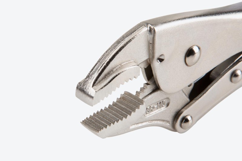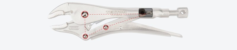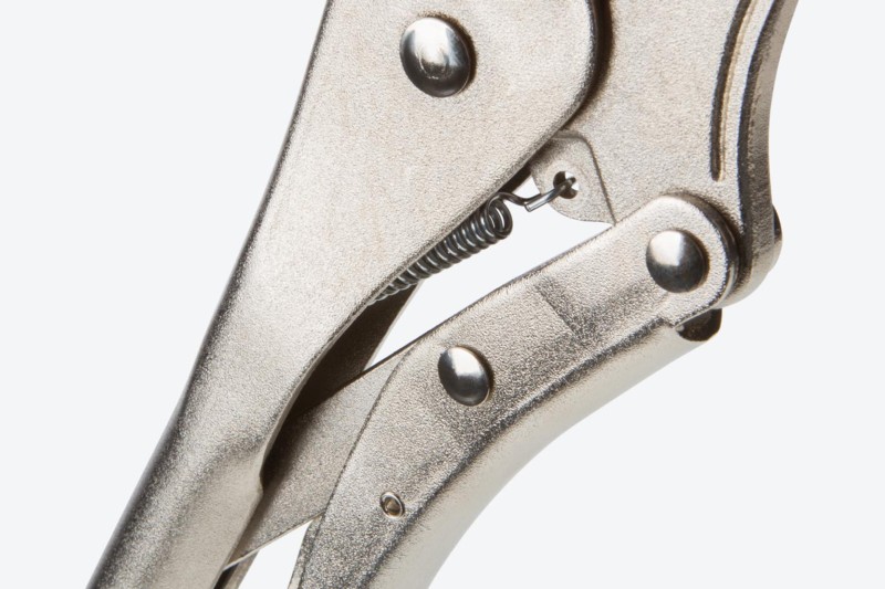 The curved section locks onto hex-shaped bolt heads, rounded-off nuts, pipes, and square tubing with the aggressive bite of deep, sharp teeth. The straight tip clamps flat stock, L-angle, and sheet metal with shallow, closely spaced teeth for an evenly distributed grip. ![]() Pull-to-Release Lever Easily set, release, and reposition the clamp with one hand and with more control than a traditional pinch-style lever. Large Adjustment Knob The adjustment knob is knurled and round to provide grip for making adjustments even when you’re wearing gloves or have slippery hands. ![]() Tensioning Through-Hole Get extra leverage and fine-tune your clamping force by inserting a screwdriver or hex key into the through-hole to create a T-handle. ![]() High-Strength Rivets Three main rivets work together to make up the 4-point mechanical structure of the pliers and give it its strength. To make sure ours can withstand high shear forces, the rivets are made from tough 4135 chromium molybdenum steel. ![]() Strong Jaws and Teeth The jaws are made from 4140 chromium molybdenum steel, an alloy that offers toughness, machinability, and corrosion resistance. The teeth are hardened to 45-50 HRC and should not chip or strip even on fasteners up to Grade 8 or Class 12.9. ![]() Durable Nickel-Plated Finish Before assembly, the individual jaw, handle, lever, and crossbar parts are shot-peened to create smooth, consistent surfaces. The final finish is a durable nickel plating that protects against corrosion. ![]() |