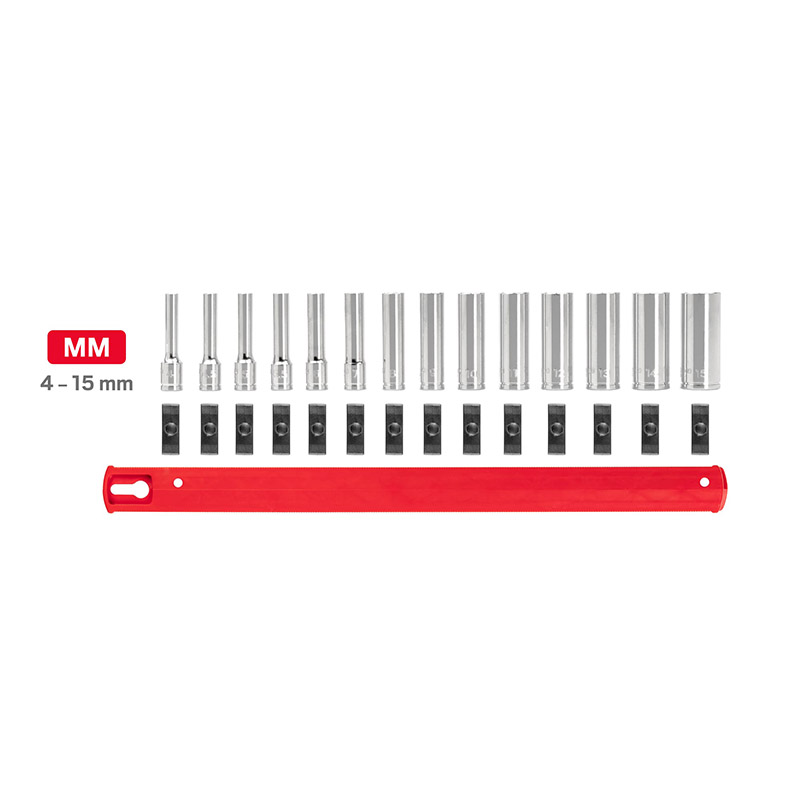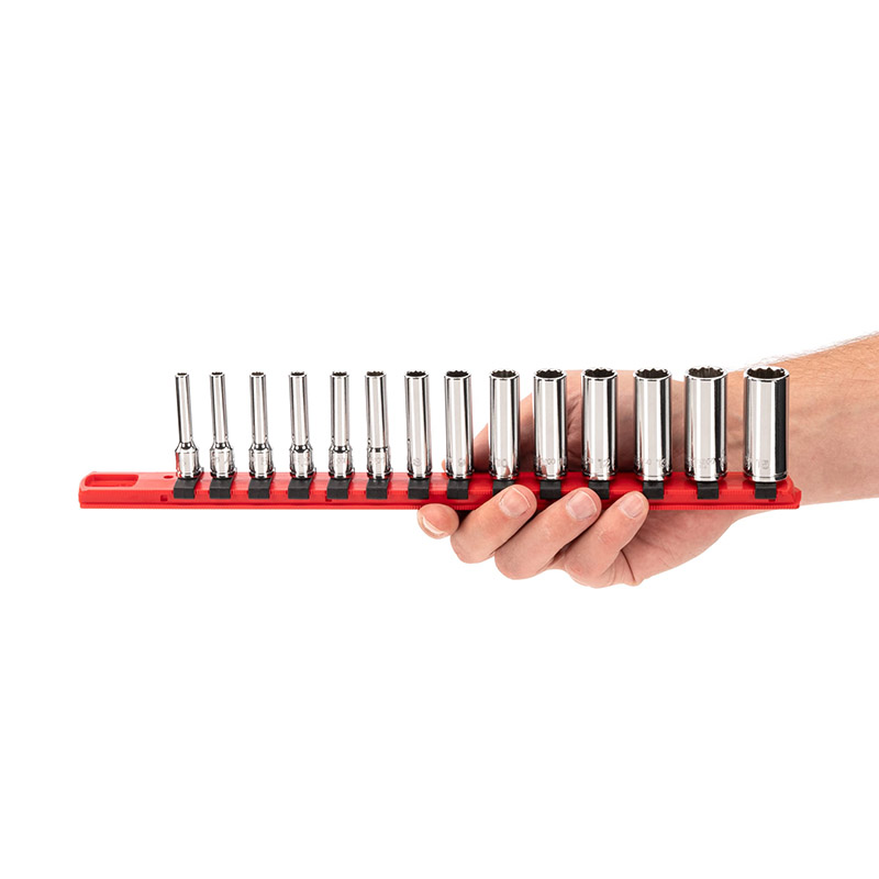 Tekton 1/4 Inch Drive Deep 12-Point Socket Set with Rail, 14-Piece (4-15 mm)