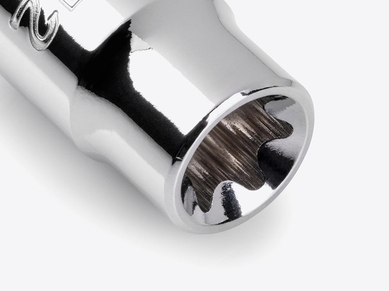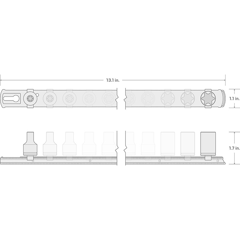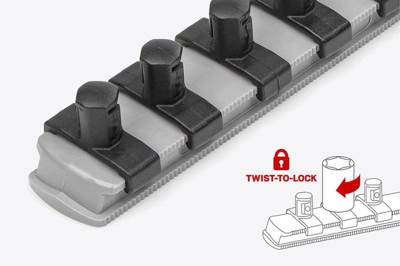 Materials and Finish The socket is made from 50BV30 steel and is hardened to 40–47 HRC for strength and durability. The socket is protected against corrosion with chrome plating on the outside and clear coat on the inside. ![]() ![]() Large, Stamped Markings - Permanently impressed into the material by a roll-stamp die - As large as possible while still being readable along the socket's curved surface - Clearly visible size numbers with extra-deep outline ![]() Secure Drive Tool Engagement Detent grooves and beveled edges provide a smooth and secure connection with the drive tool. ![]() Socket Rail Organization - Patented twist-to-lock design securely holds sockets on the rail - Keyhole slot mounts to wall or workbench - Combine multiple socket rails with trays and other accessories ![]() |