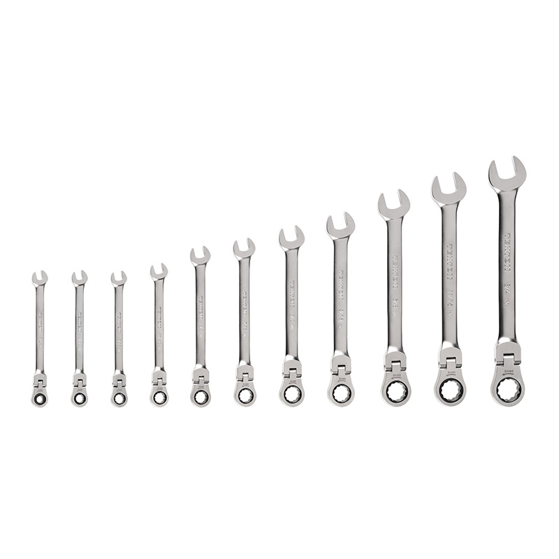 Parts and Assembly ![]() 180º Flex Heads The flex head sweeps smoothly through 180 degrees without any set positions. This allows the wrench to operate at any angle and navigate around obstructions in its swing path. 12-Point Box End Fits multiple types of fasteners, including 6-point, 12-point, and square. ![]() Clear Markings Tekton flex head ratcheting wrenches are permanently marked in two ways: a high-visibility laser marking and a stamped marking. ![]() ![]() Smooth, Satin Chrome Finish We make our ratcheting wrench bodies from 6140 chromium-vanadium steel and heat-treat them to 42-49 HRC. The wrenches are abrasive-blasted to create a finely textured finish, which is then plated with trivalent chromium. ![]() |
