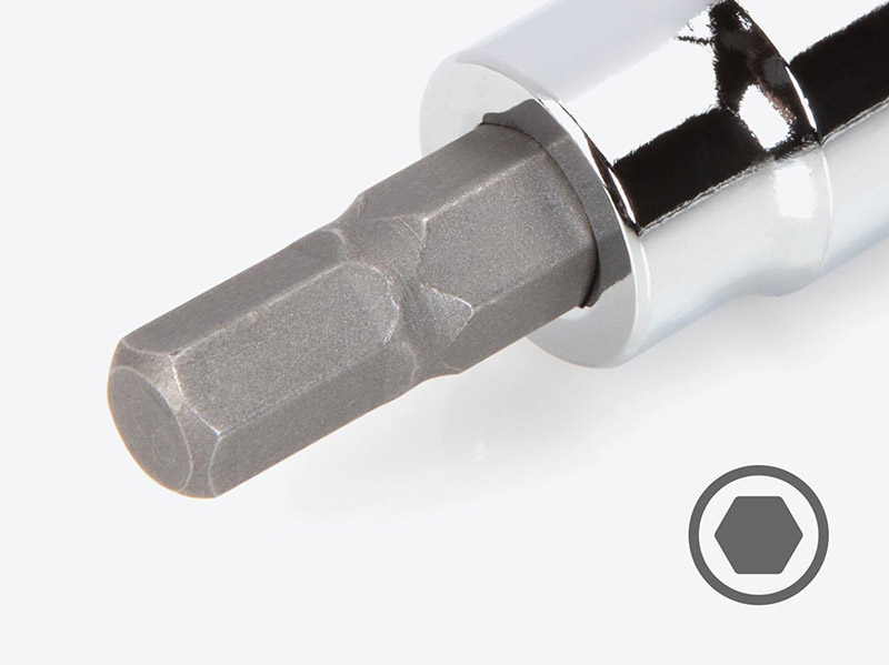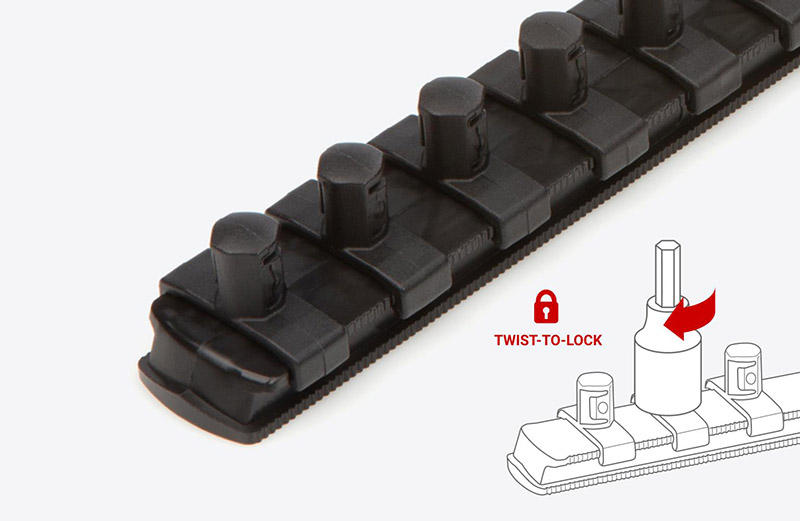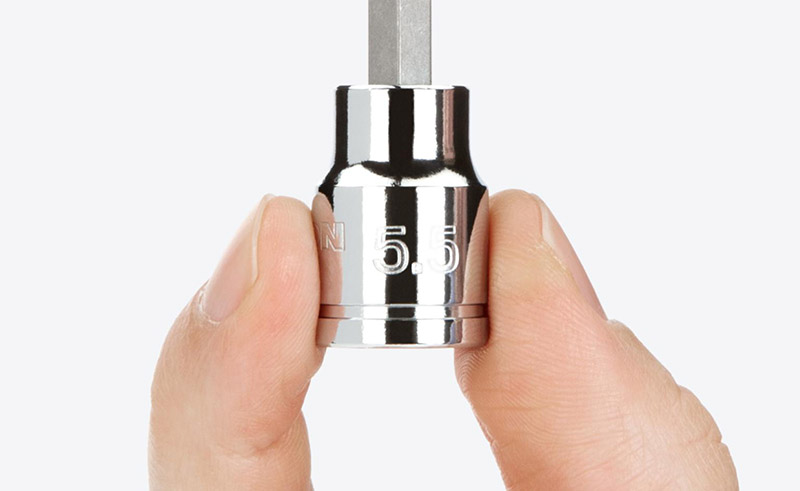Strong, Precise Hex Bits - Bits are made of S2 heat-treated steel - The 6-sided hexagonal tip is machined to precise tolerances for an exact fit with hex fasteners ![]() Straight, Permanent Connection - Bits are pressed directly into the socket for a permanent connection - The carefully controlled process ensures bits are exceptionally straight - A tightly mated fit means bits will not loosen over time or under stress ![]() Large, Stamped Markings - Permanently impressed into the material by a roll-stamp die - As large as possible while still being readable along the socket’s curved surface - Clearly visible size numbers with extra-deep outline ![]() Secure Drive Tool Engagement Detent grooves and beveled edges provide a smooth and secure connection with the drive tool. ![]() - Patented twist-to-lock design securely holds sockets on the rail - Keyhole slot mounts to wall or workbench - Combine multiple socket rails with trays and other accessories ![]() |