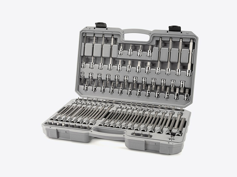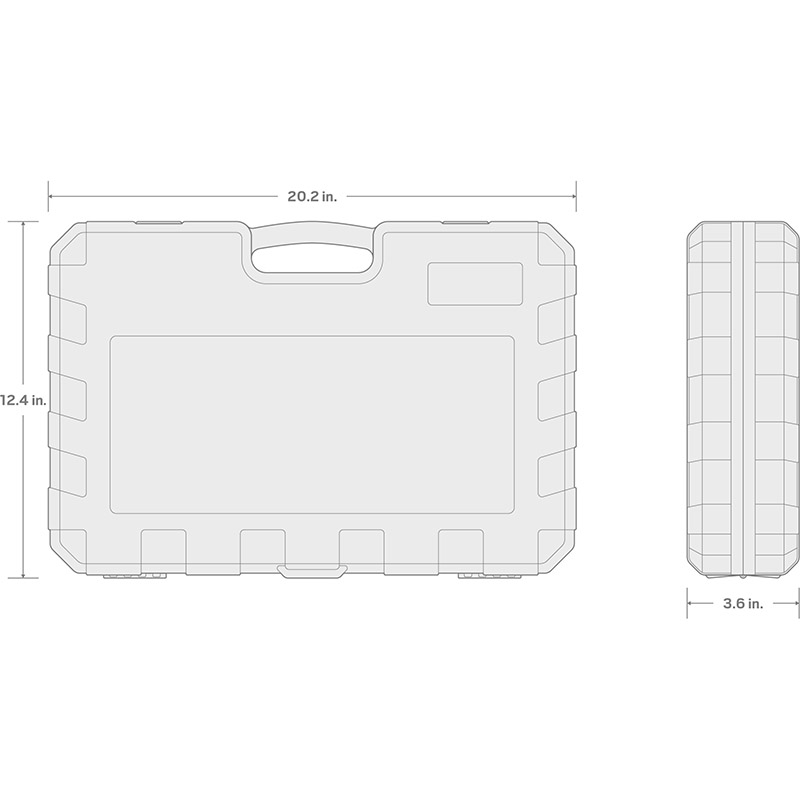 Strong, Precise Triple Square Bits - Made from heat-treated S2 steel for a hardened bit that holds fine geometry over time - Machined to precise tolerances for an exact fit with fasteners ![]() Long Reach Bits The 4.9 inch bit length allows you to reach deep into narrow, recessed areas. ![]() Straight, Permanent Connection - Bits are pressed directly into the socket for a permanent connection - The carefully controlled process ensures bits are exceptionally straight - A tightly mated fit means bits will not loosen over time or under stress ![]() Large, Stamped Markings - Permanently impressed into the material by a roll-stamp die - As large as possible while still being readable along the socket’s curved surface - Clearly visible size numbers with extra-deep outline ![]() Secure Drive Tool Engagement Detent grooves and beveled edges provide a smooth and secure connection with the drive tool. ![]() - High-density polyethylene material withstands exposure to common lubricants, fuels, and solvents - Strong latches and metal hinge pins - Molded size markings for each tool inside the case ![]() |