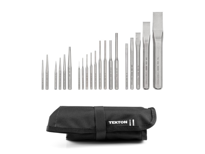 Tekton Punch and Chisel Set with Pouch, 20-Piece (Center, Solid, Pin, Chisel)