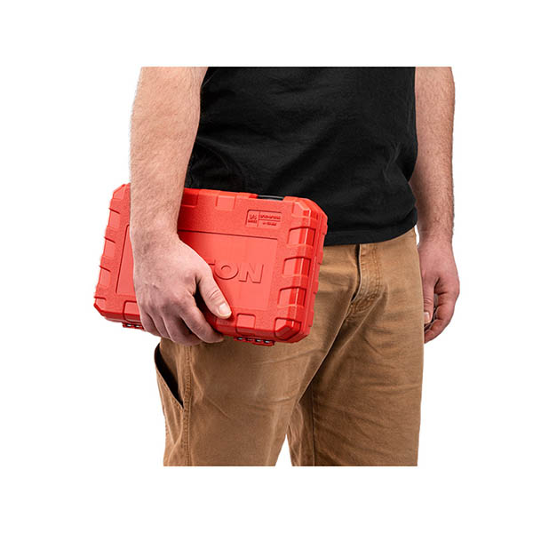 Large, Stamped Markings - Permanently impressed into the material by a roll-stamp die. - As large as possible while still being readable along the socket's curved surface - Clearly visible size numbers with extra-deep outline ![]() Fully Stepped Shoulders Narrowed diameter stretches to the base of the socket on small, deep-length sizes. This provides greater reach into tight, recessed areas. ![]() ![]() Exterior and Interior Finishes - Chrome-plated exterior is highly corrosion resistant and wipes clean to a mirror finish - Interior is protected against rust with clear coat, rather than commonly-used metallic paint ![]() 12-Point Socket Opening Get more access positions for multiple types of fasteners. ![]() ![]() Prevents Fastener Round-Off Radiused corners prevent fastener round-off by applying force to a fastener's flat sides, rather than its corners. ![]() Secure Drive Tool Engagement Detent grooves and beveled edges provide a smooth and secure connection with the drive tool. ![]() High Torque Strength Meets minimum value of 1.2 times the ANSI standard for Proof Torque. Verified by a single-cycle test that applies torque until specified value is reached without failure or permanent deformation. ![]() 90-Tooth Ratchet - 4-degree swing arc - Ultra-compact head is reduced in all dimensions - Quick-release drive locks sockets onto tang and releases with the press of a button ![]() Included Accessories3 and 6 Inch ExtensionsReach past obstructions and into tight, narrow spaces. ![]() Universal Joint Reach around obstructions and access fasteners at an angle. ![]() Spinner Handle Attach sockets to the spinner handle and use it like a nut driver. ![]() Magnetic Hex Bit Holder Adapt any 1/4 inch hex shank bit to 1/4 inch drive ratchets, driver handles, and other drive tools. ![]() Carrying Case - Resilient high-density polyethylene material withstands exposure to common lubricants, fuels, and solvents. - Strong latches and metal hinge pins - Molded size markings for each tool inside the case ![]() |