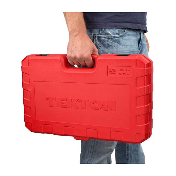Tekton 3/8 Inch Drive 12-Point Socket and Ratchet Set with Case - 73-Piece (1/4-1 in., 6-24 mm)