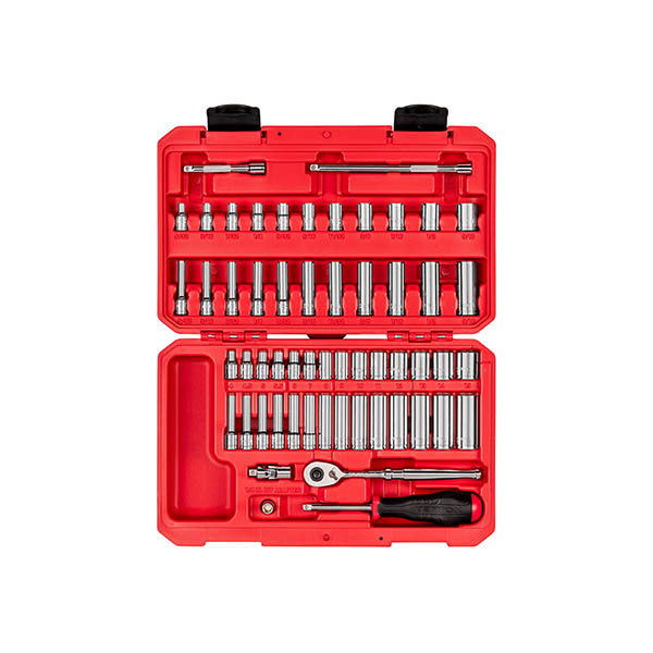 Large, Stamped Markings - Permanently impressed into the material by a roll-stamp die. - As large as possible while still being readable along the socket's curved surface - Clearly visible size numbers with extra-deep outline ![]() Fully Stepped Shoulders Narrowed diameter stretches to the base of the socket on small, deep-length sizes. This provides greater reach into tight, recessed areas. ![]() ![]() Exterior and Interior Finishes - Chrome-plated exterior is highly corrosion resistant and wipes clean to a mirror finish. - Interior is protected against rust with clear coat, rather than commonly-used metallic paint. ![]() 6-Point Socket Opening Provides an exact fit and maximum contact for hex fasteners. ![]() Prevents Fastener Round-Off Radiused corners prevent fastener round-off by applying force to a fastener's flat sides, rather than its corners. ![]() Secure Drive Tool Engagement Detent grooves and beveled edges provide a smooth and secure connection with the drive tool. ![]() High Torque Strength Meets minimum value of 1.2 times the ANSI standard for Proof Torque. Verified by a single-cycle test that applies torque until specified value is reached without failure or permanent deformation. ![]() 90-Tooth Ratchet - 4-degree swing arc - Ultra-compact head is reduced in all dimensions - Quick-release drive locks sockets onto tang and releases with the press of a button ![]() Included Accessories3 and 6 Inch ExtensionsReach past obstructions and into tight, narrow spaces. ![]() Universal Joint Reach around obstructions and access fasteners at an angle. ![]() Spinner Handle Attach sockets to the spinner handle and use it like a nut driver. ![]() Magnetic Hex Bit Holder Adapt any 1/4 inch hex shank bit to 1/4 inch drive ratchets, driver handles, and other drive tools. ![]() Storage Case - Resilient high-density polyethylene material withstands exposure to common lubricants, fuels, and solvents - Strong latches and metal hinge pins - Molded size markings for each tool inside the case ![]() |
