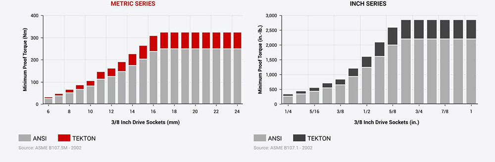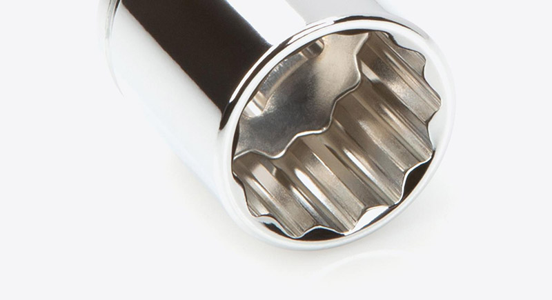 Large, Stamped Markings - Permanently impressed into the material by a roll-stamp die. - As large as possible while still being readable along the socket's curved surface - Clearly visible size numbers with extra-deep outline ![]() Exterior and Interior Finishes - Chrome-plated exterior is highly corrosion resistant and wipes clean to a mirror finish - Interior is protected against rust with clear coat, rather than commonly-used metallic paint ![]() 12-Point Socket Opening Get more access positions for multiple types of fasteners. ![]() ![]() Prevents Fastener Round-Off Radiused corners prevent fastener round-off by applying force to a fastener's flat sides, rather than its corners. ![]() Secure Drive Tool Engagement - Four detent grooves provide a secure connection with the retaining ball of a drive tool - Beveled inner rims help guide the socket onto other tools ![]() High Torque Strength Meets minimum value of 1.3 times the ANSI standard for Proof Torque. Verified by a single-cycle test that applies torque until specified value is reached without failure or permanent deformation. ![]() Socket Rail Organization - Patented twist-to-lock design securely holds sockets on the rail - Keyhole slot mounts to wall or workbench - Combine multiple socket rails with trays and other accessories ![]() |