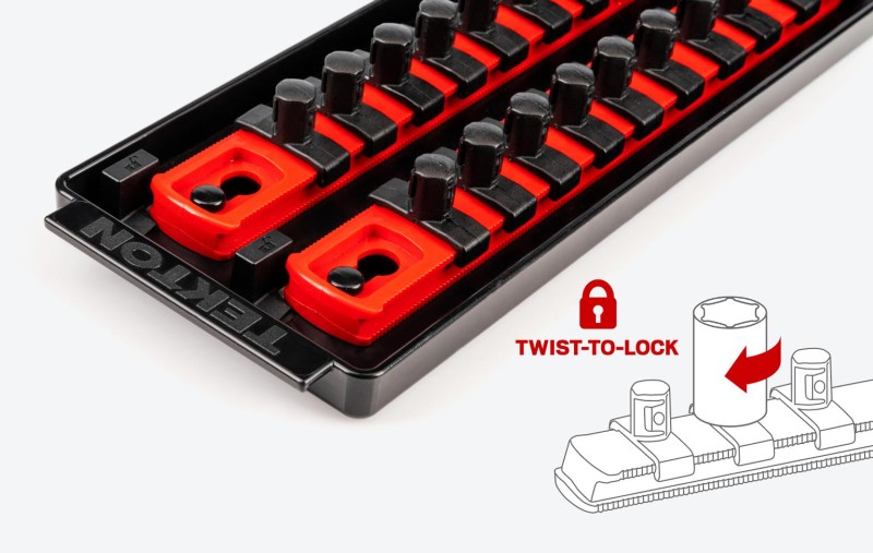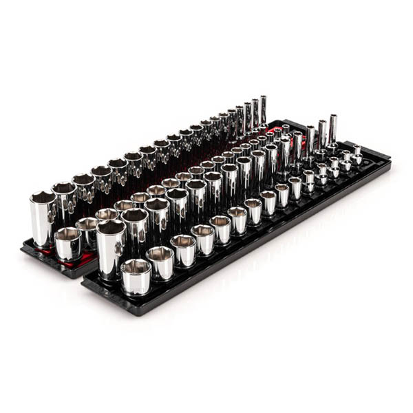 Tekton 3/8 Inch Drive 12-Point Socket Set with Rails and Tray